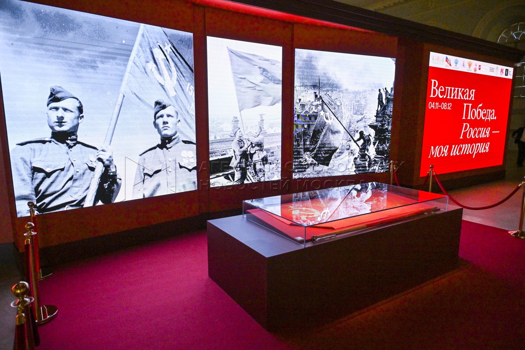 - Описание: Историко-документальная выставка «Великая Победа. Россия – моя история» в центральном выставочном зале «Манеж». Фото: Владимир Новиков, пресс-служба мэра и правительства Москвы.
