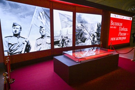 - Описание: Историко-документальная выставка «Великая Победа. Россия – моя история» в центральном выставочном зале «Манеж». Фото: Владимир Новиков, пресс-служба мэра и правительства Москвы.