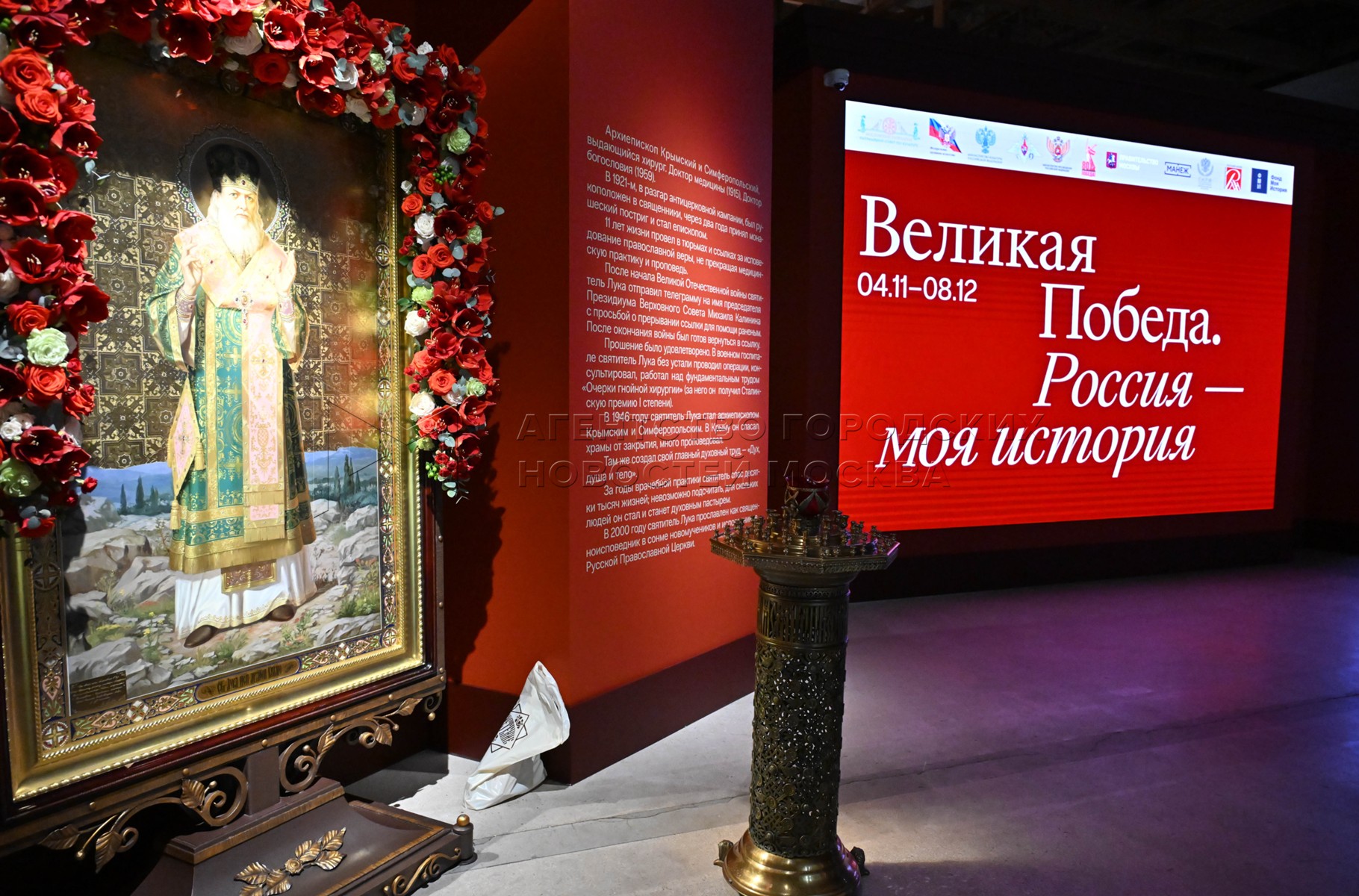 - Описание: Икона святителя Луки Крымского (Войно-Ясенецкого). Историко-документальная выставка «Великая Победа. Россия – моя история» в центральном выставочном зале «Манеж». Фото: Владимир Новиков, пресс-служба мэра и правительства Москвы.