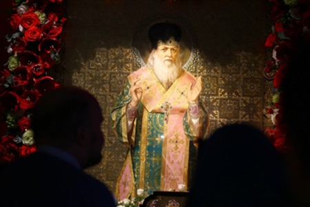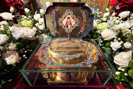 Ковчег с мощами святителя Луки Крымского (Войно-Ясенецкого). Выставка «Великая победа. Россия – Моя история» в рамках выставки-форума «Православная Русь – к Дню народного единства» в Центральном выставочном зале «Манеж».