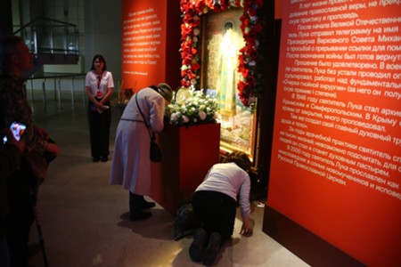 - Описание: Ковчег с мощами святителя Луки Крымского (Войно-Ясенецкого). Выставка «Великая победа. Россия – Моя история» в рамках выставки-форума «Православная Русь – к Дню народного единства» в Центральном выставочном зале «Манеж».