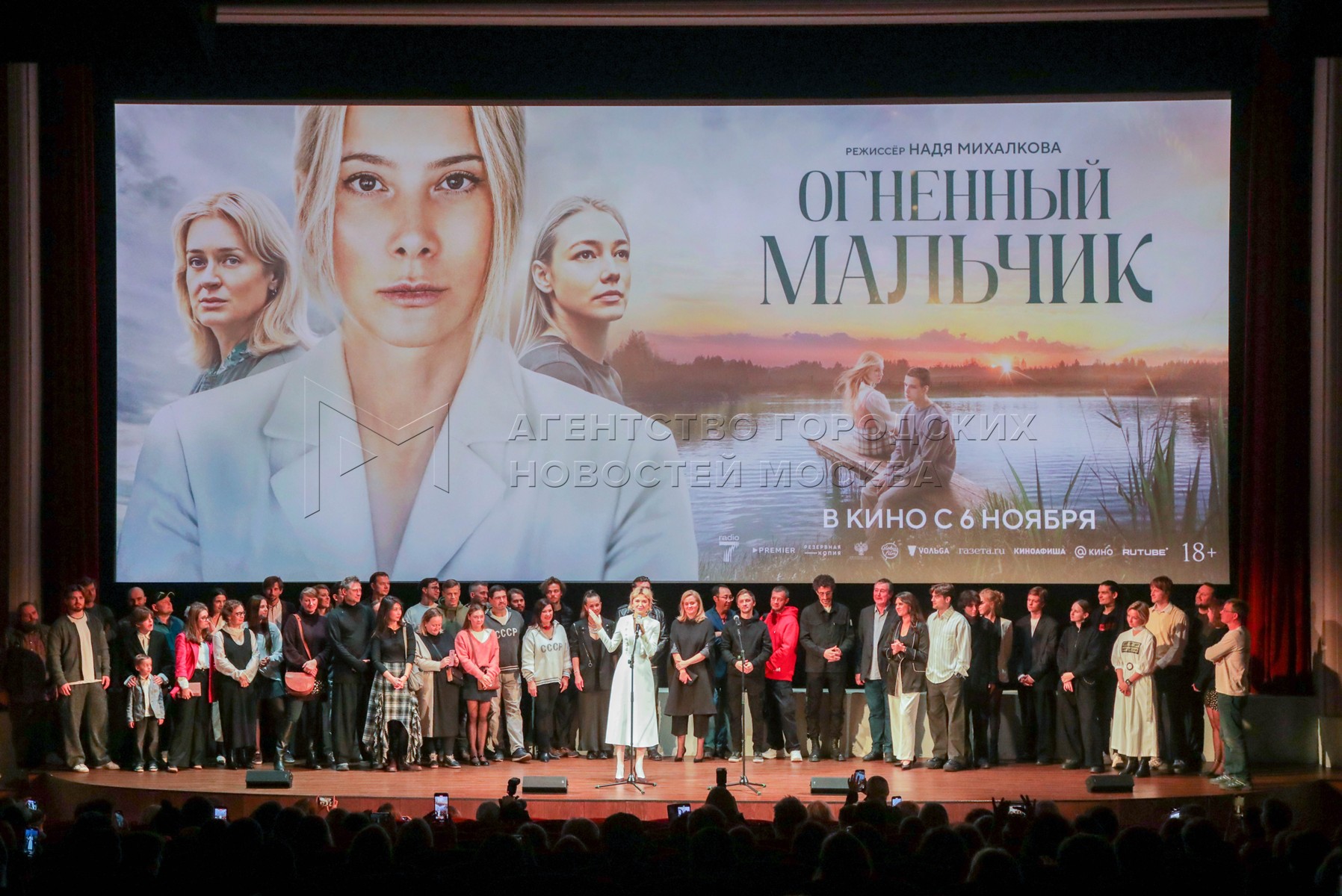 • Описание: Съемочная группа на премьере фильма режиссера Нади Михалковой «Огненный мальчик» в кинотеатре «Художественный».