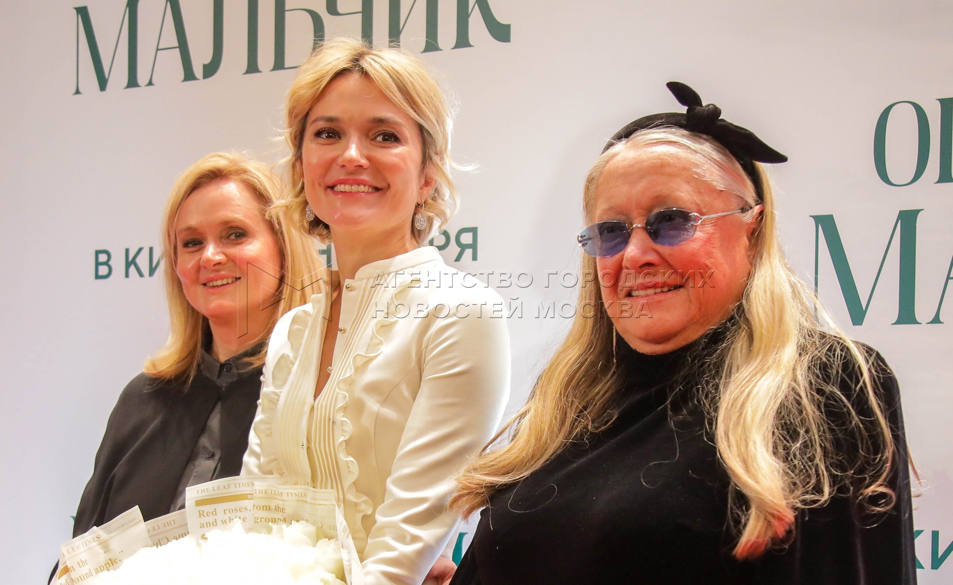 - Описание: Режиссер фильма «Огненный мальчик» Надежда Михалкова (в центре), актриса Анна Михалкова (слева) и президент благотворительного фонда «Русский Силуэт» Татьяна Михалкова на премьере фильма в кинотеатре «Художественный».