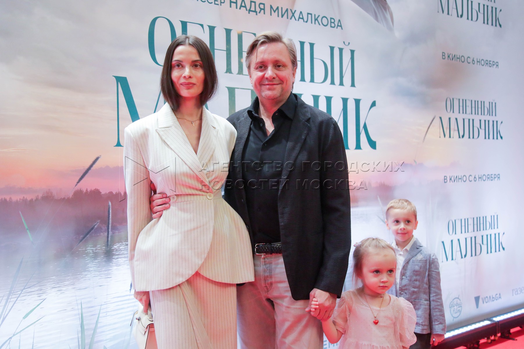 Режиссер Артем Михалков с супругой Дарьей Баженовой и детьми на премьере фильма р...