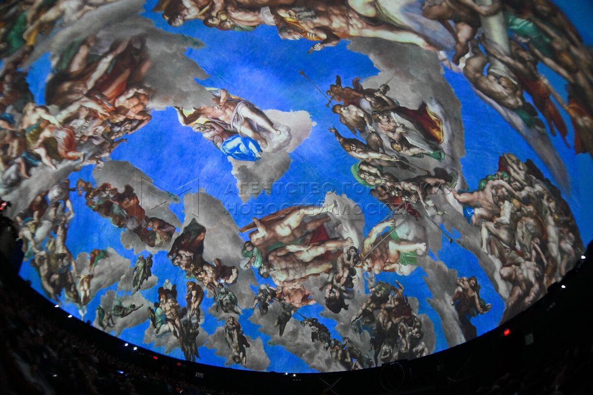 • Описание: Посетители перед мультимедийным спектаклем «Коперник» в «Научном Звездном театре» Московского планетария.