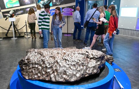 Посетители перед мультимедийным спектаклем «Коперник» в «Научном Звездном театре»...