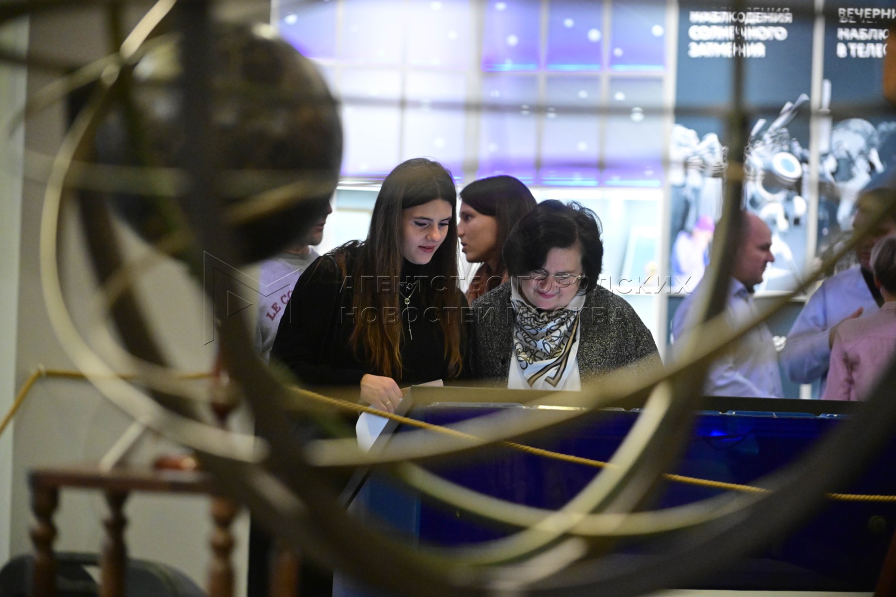 - Описание: Посетители перед мультимедийным спектаклем «Коперник» в «Научном Звездном театре» Московского планетария.