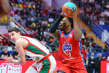 Игроки слева направо – Робертсон Кэшюс (Локомотив-Кубань) и Каспер Уэйр (ЦСКА) в...