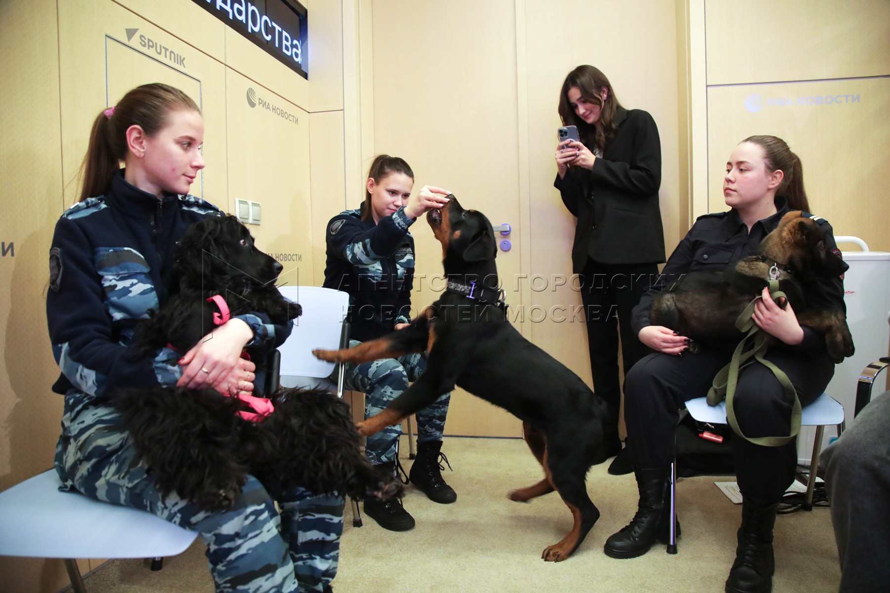 Показ элементов дрессировки служебных собак на пресс-конференции «Профессия – за...
