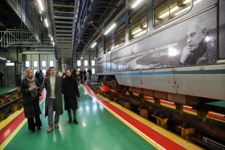 Запуск в электродепо «Аминьевское» тематического поезда метро, посвященного 80-л...