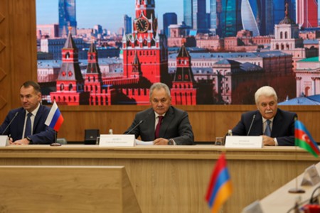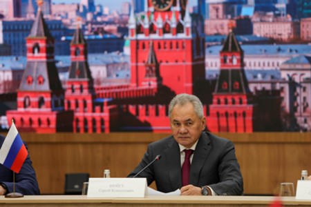 Секретарь Совета безопасности РФ Сергей Шойгу на пленарном заседании XIII встречи секретарей Cоветов безопасности государств – участников СНГ в национальном центре «Россия» в Москве.