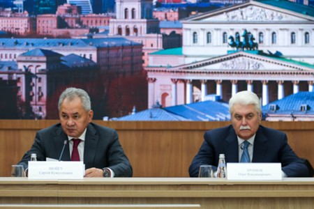 • Описание: Секретарь Совета безопасности РФ Сергей Шойгу на пленарном заседании XIII встречи секретарей Cоветов безопасности государств – участников СНГ в национальном центре «Россия» в Москве.