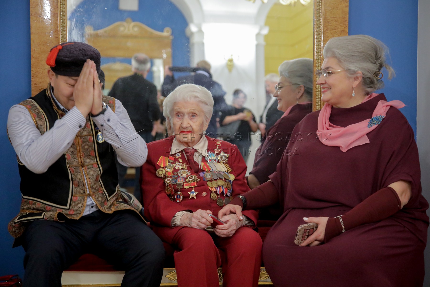 - Описание: Ветеран Великой Отечественной войны, принимавшая участие в боях на Дону и Сталинградской битве, в Курской битве, боях под Прохоровкой, в форсировании Днепра, освобождении территорий Украины, Молдавии, Румынии, Польши, Германии и Чехословакии – 101-летняя Мария Михайловна Рохлина, получившая награду в специальной номинации (в центре). Торжественная церемония награждения лауреатов VI Всероссийской общественной премии за личный вклад в этнокультурное развитие и укрепление единства народов России «Гордость нации – 2025» в Государственном академическом Малом театре.