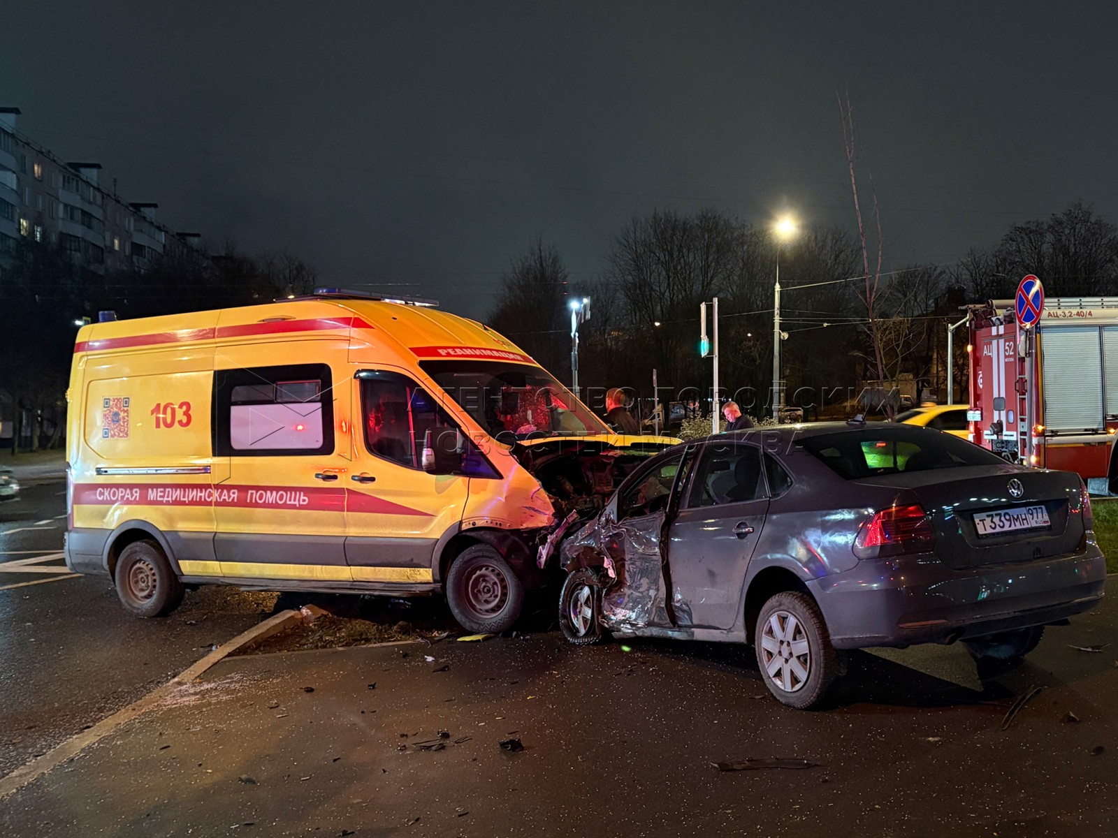 Автомобиль Volkswagen и машина скорой помощи столкнулись на ул. Чертановская на юге Москвы.
