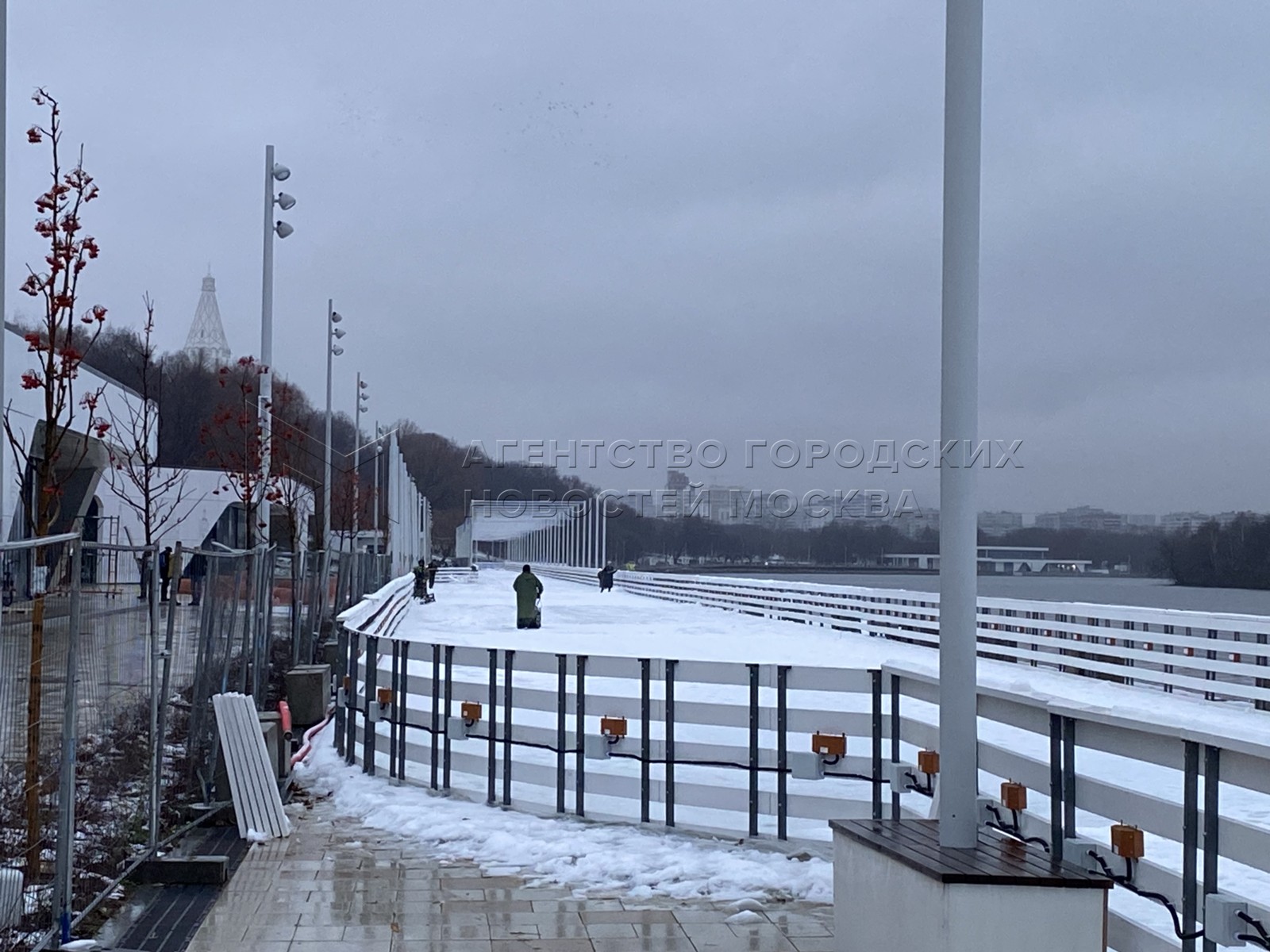 Специалисты комплекса городского хозяйства завершают работы по обустройству катка на новой набережной музея-заповедника «Коломенское» на юге столицы.