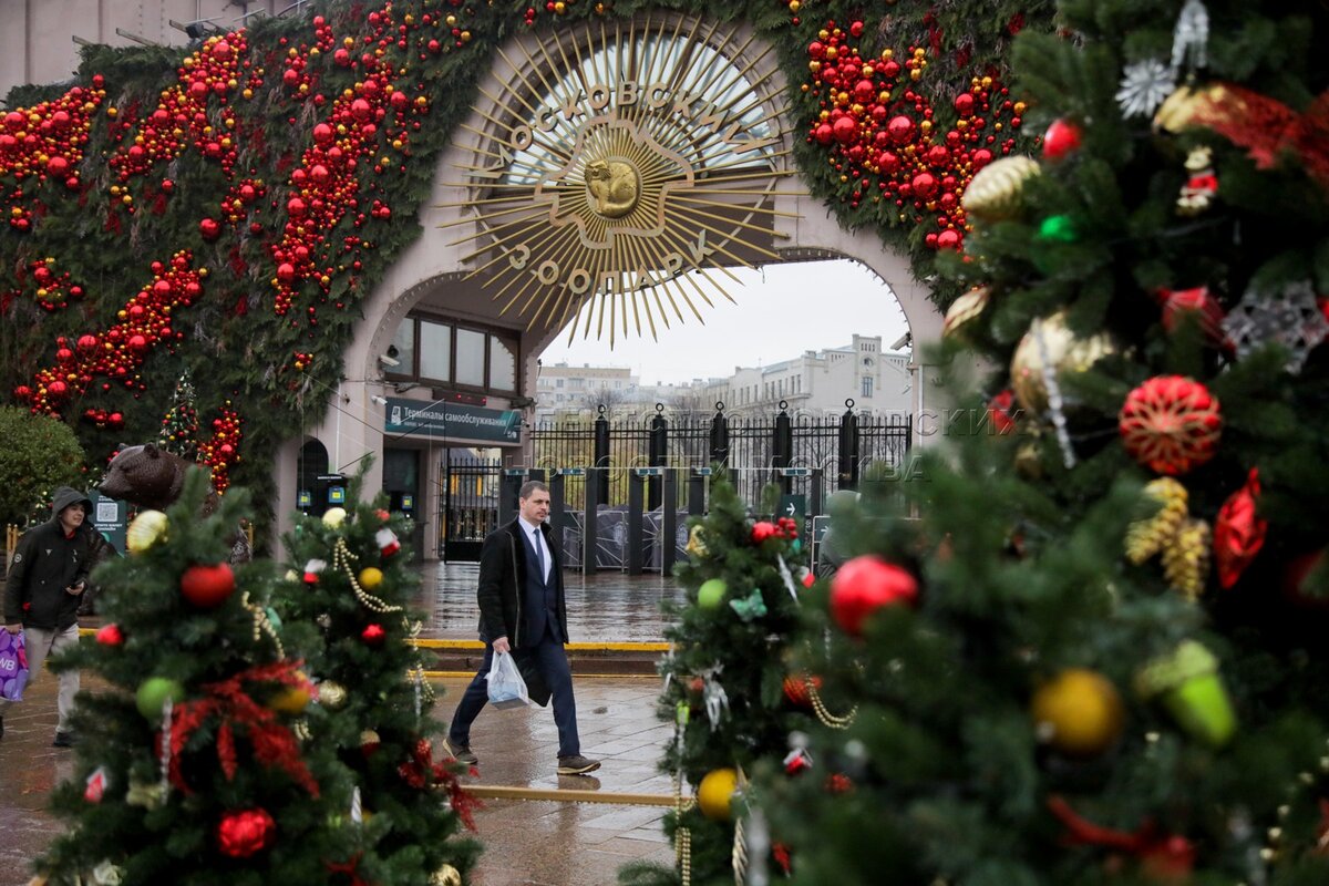 • Описание: Новогоднее оформление главного входа Московского зоопарка.