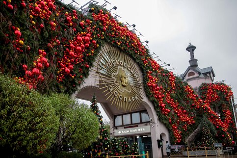 • Заголовок: Новогоднее оформление главного входа Московского зоопарка