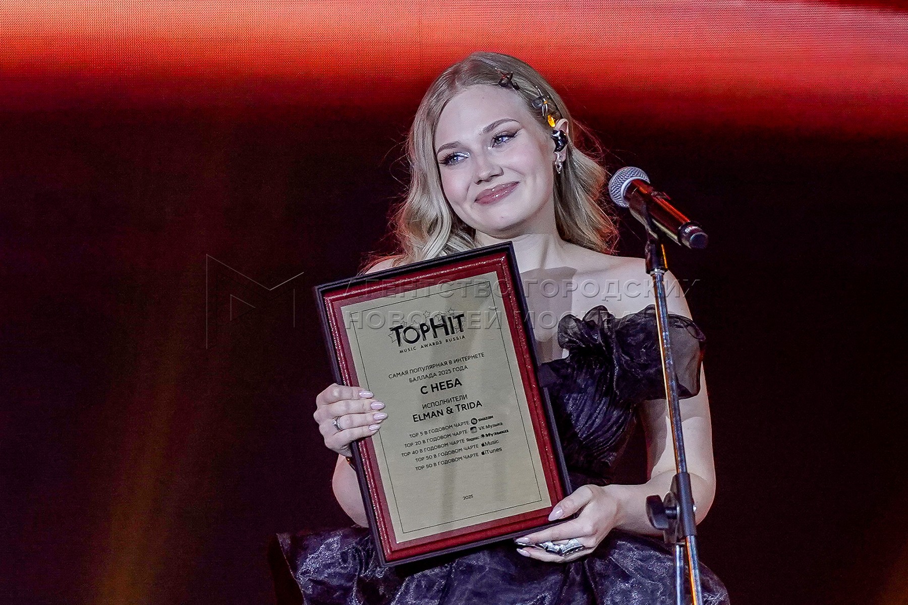 - Описание: Певица Trida (Татьяна Мещерякова-Федулова) в дуете с певцом Elman Эльмананом Зейналовым, получившая награду в номинации «Самая популярная в интернете баллада 2025» (песня «С неба») на XII Церемонии вручения музыкальных премий Top Hit Music Awards в Театре на Цветном.