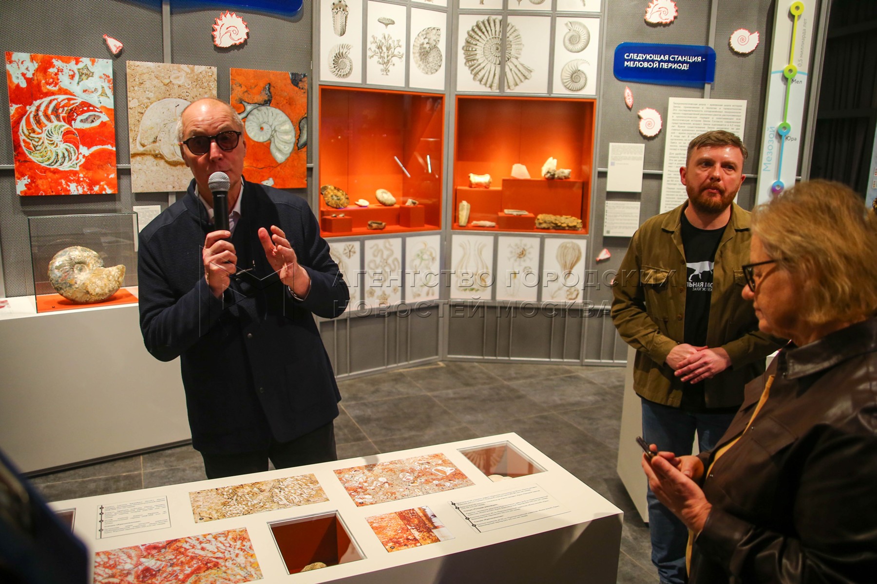 • Описание: Научный куратор выставки, эксперт по научно-методической работе Московского планетария Игорь Максимов на открытии выставки «Рейс в мезозой: планетарий – метро» в Московском планетарии.