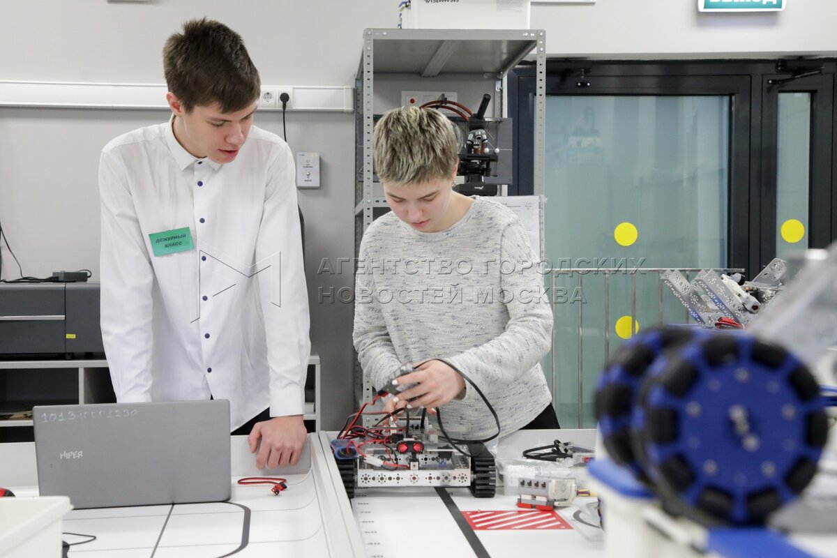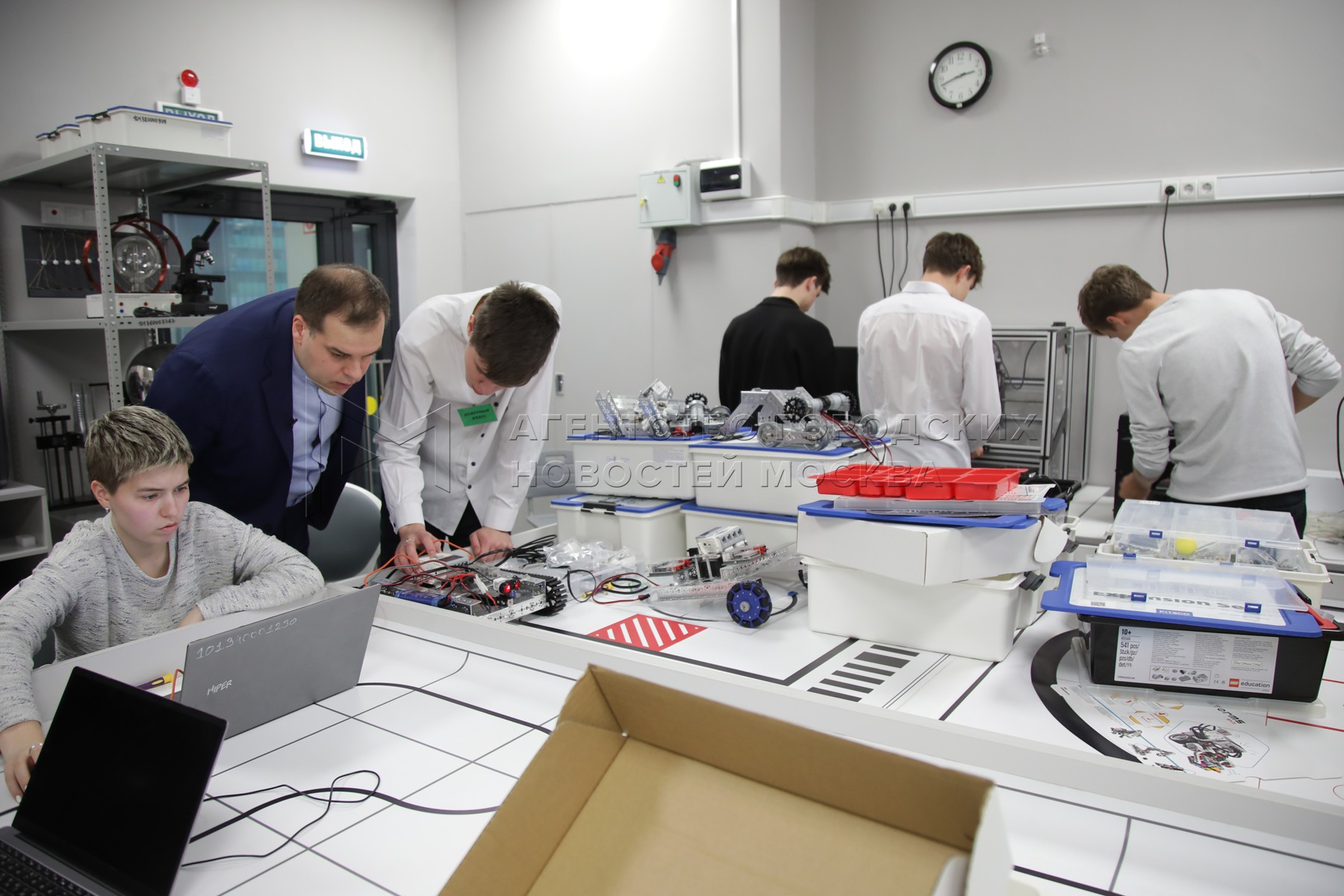 Учащиеся во время занятий в инженерно-физической лаборатории «Школы в Некрасовке» на ул. Вертолетчиков.