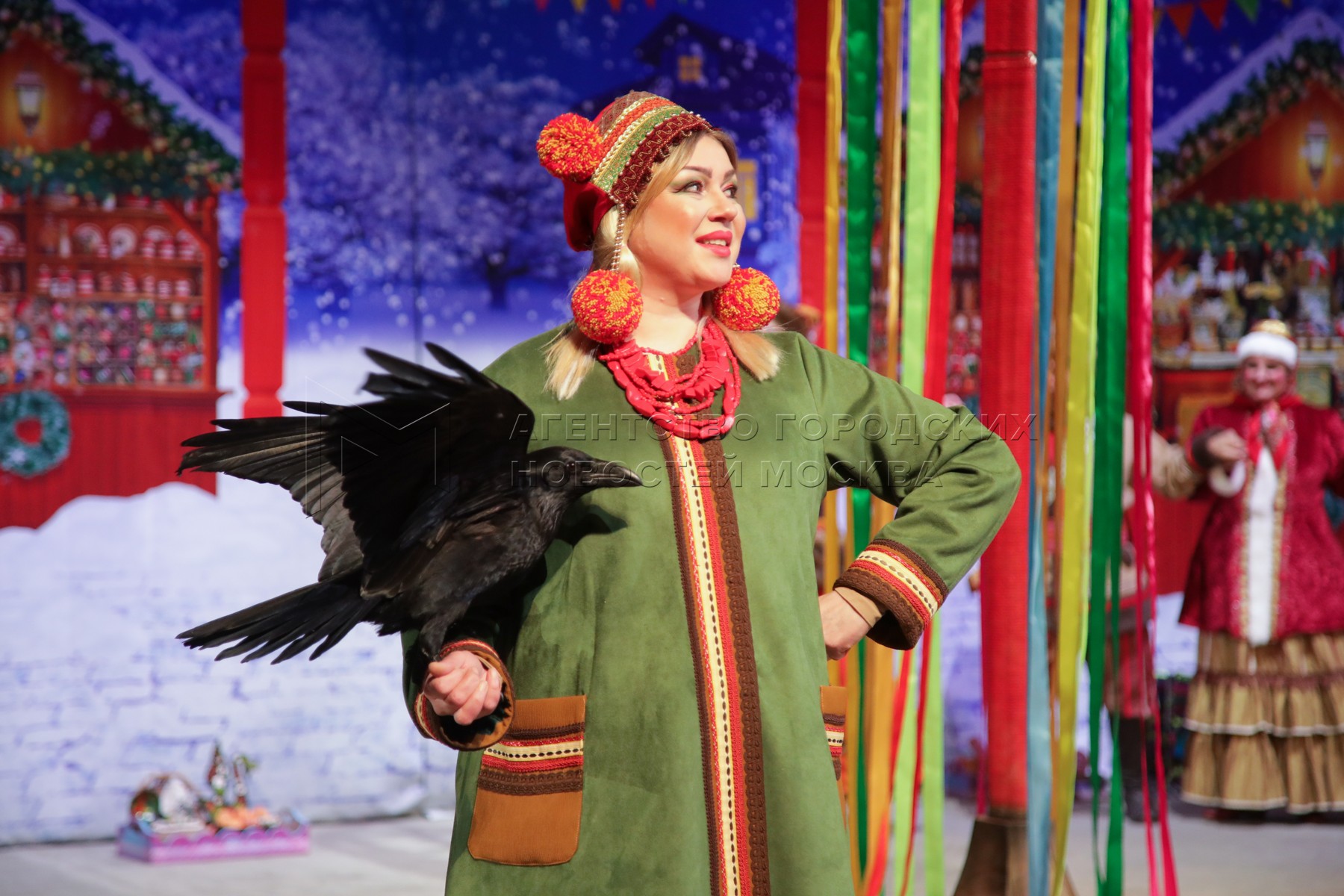 • Описание: Артистка театра с дрессированным вороном во время предпоказа спектакля «Полет в страну мечты» в ГБУК Москвы «Театр «Уголок дедушки Дурова».