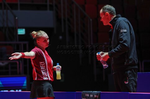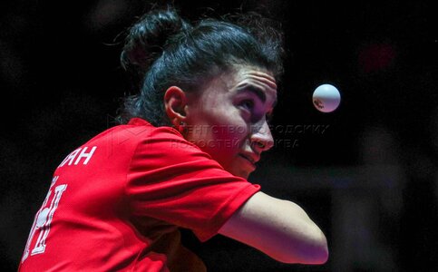 Матч Яна Жукова – Мария Тайлакова во время соревнований по настольному теннису на...
