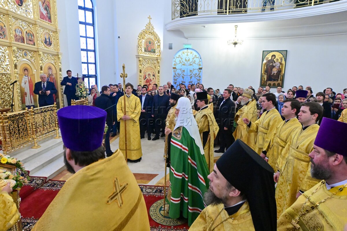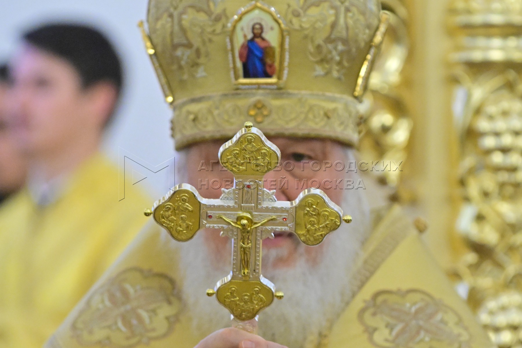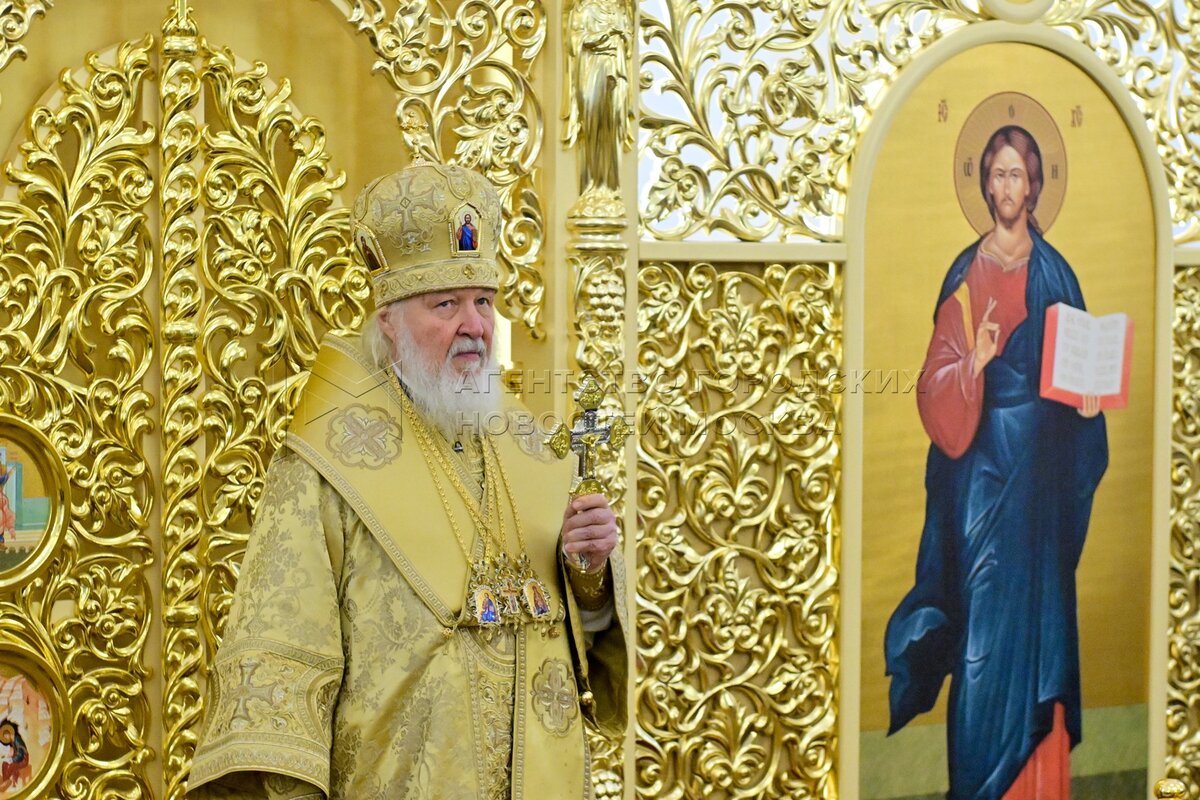 Патриарх Московский и всея Руси Кирилл (в центре) во время освящения великим чино...