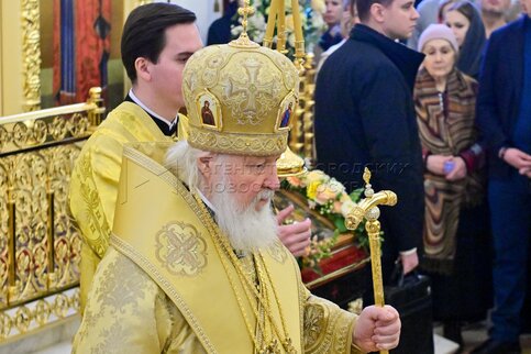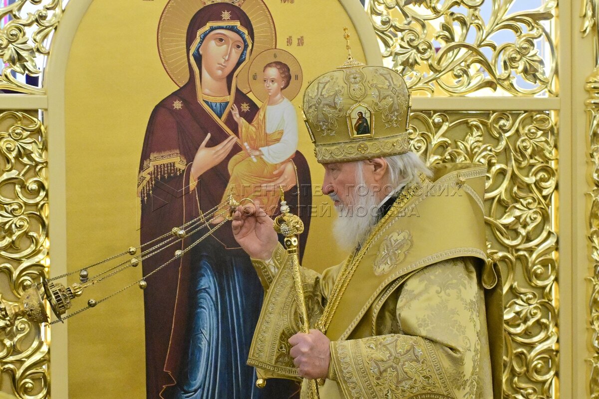 Патриарх Московский и всея Руси Кирилл во время освящения великим чином храма в ч...