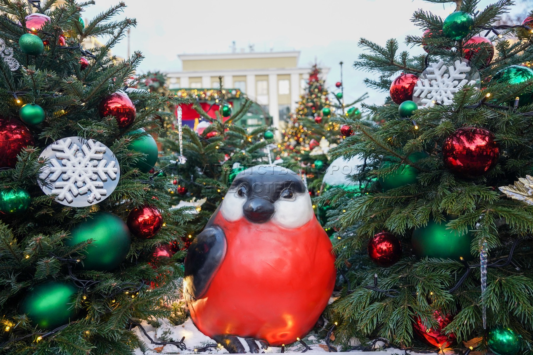 • Описание: Новогоднее украшение Тверской площади в центре Москвы.