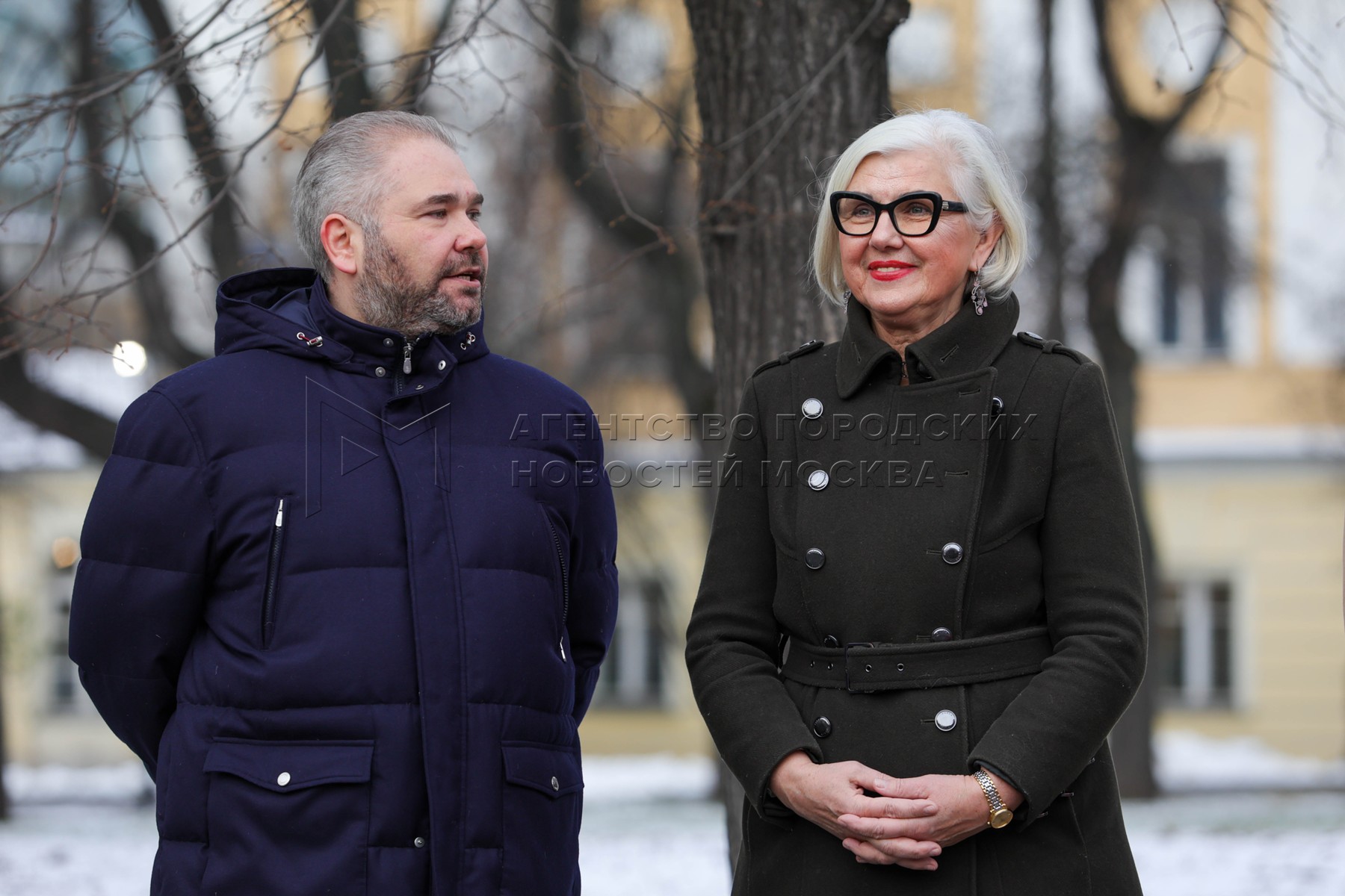 - Описание: Заместитель министра культуры РФ Андрей Малышев и директор Всероссийского музея декоративного искусства Татьяна Рыбкина на церемонии открытия памятника канцлеру Российской империи Ивану Андреевичу Остерману к 300-летию со дня рождения И. Остермана на территории Всероссийского музея декоративного искусства.