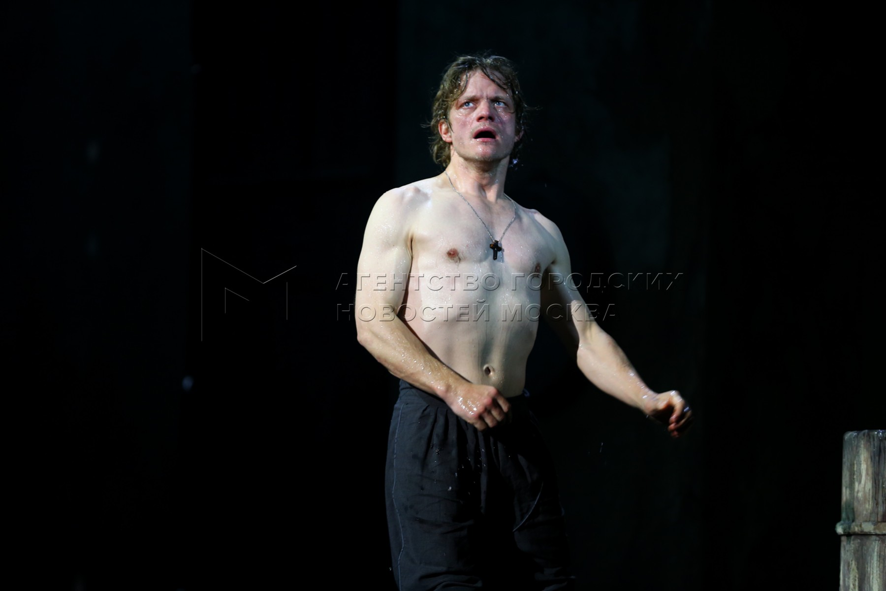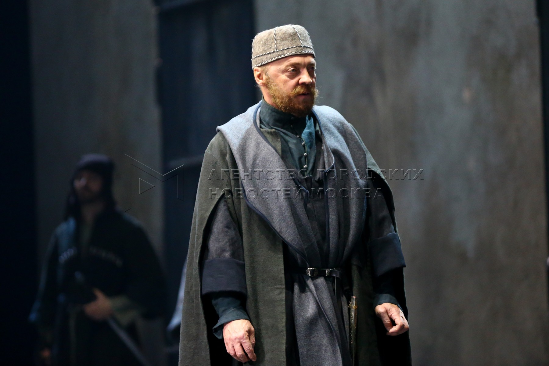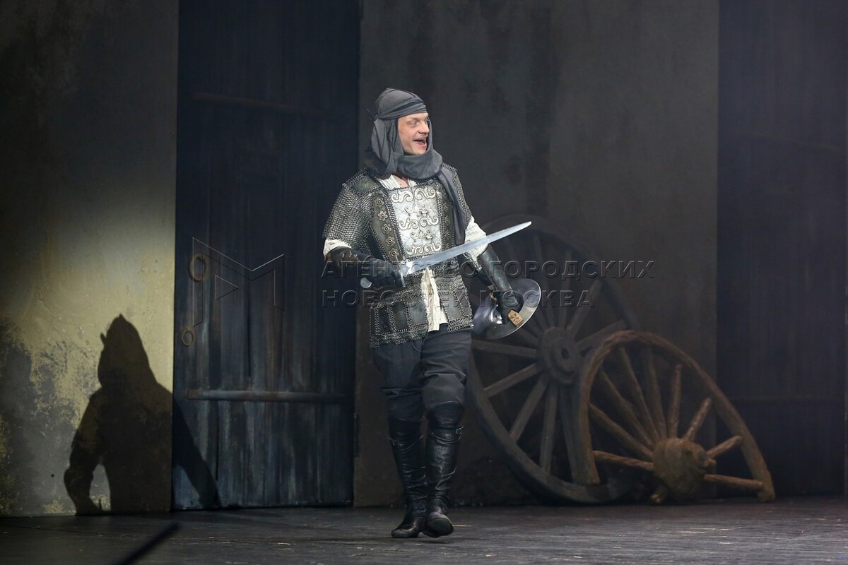 Актер Евгений Ткачук во время предпоказа спектакля Андрея Кончаловского «Макбет» ...