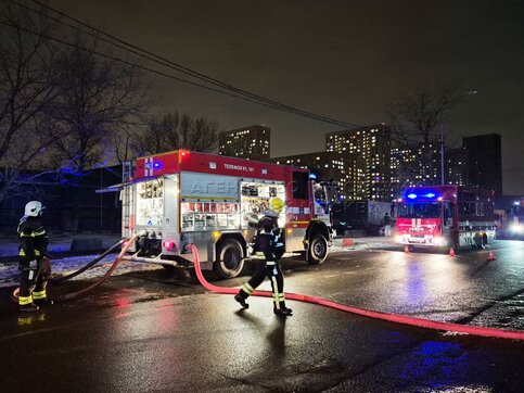 • Заголовок: Работа пожарно-спасательных подразделений на месте возгорания в ангаре на юге Москвы