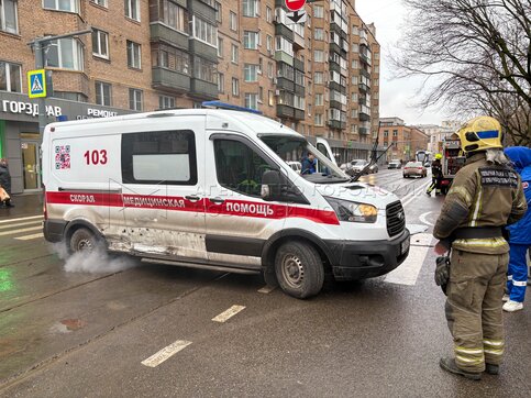 Последствия столкновения машины скорой помощи и автомобиля Renault на ул. Трифоно...