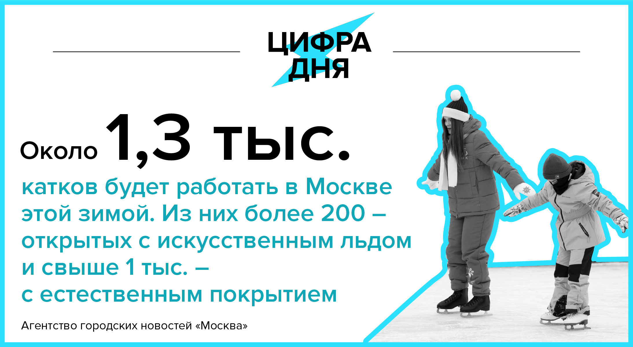 • Заголовок: Цифра дня 18 декабря: Около 1,3 тыс. катков будет работать в Москве этой зимой
