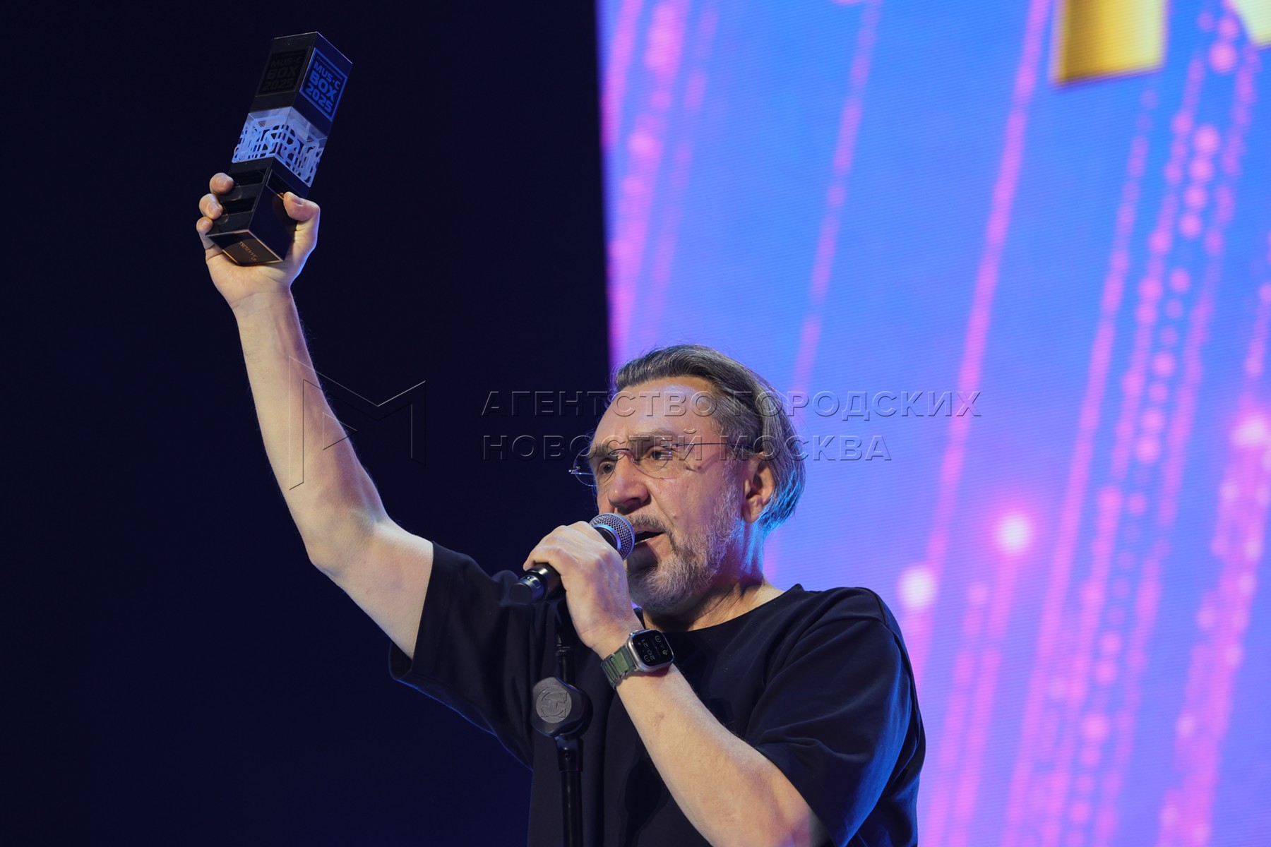 • Описание: Музыкант Сергей Шнуров на церемониии «Реальная премия Musicbox» 2025.