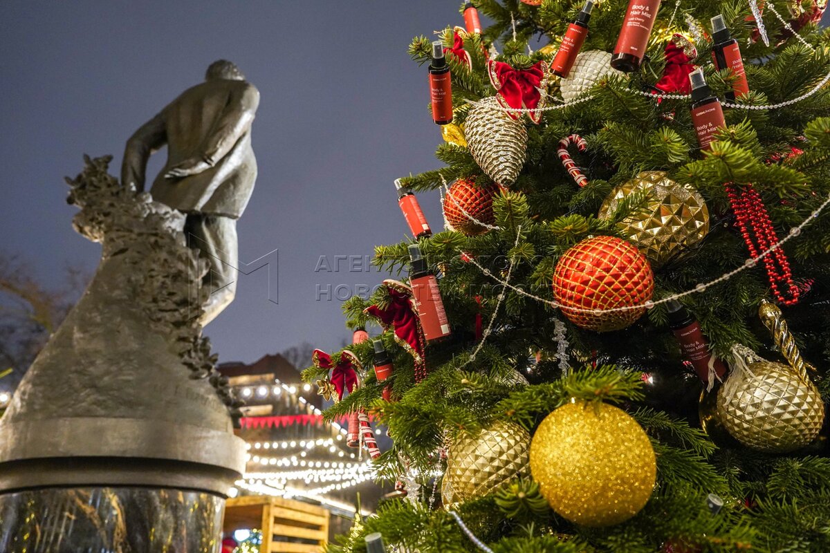 Открытие выставки eлок, созданных российскими бьюти-брендами в рамках фестиваля «Путешествие в Рождество», на Тверском бульваре.