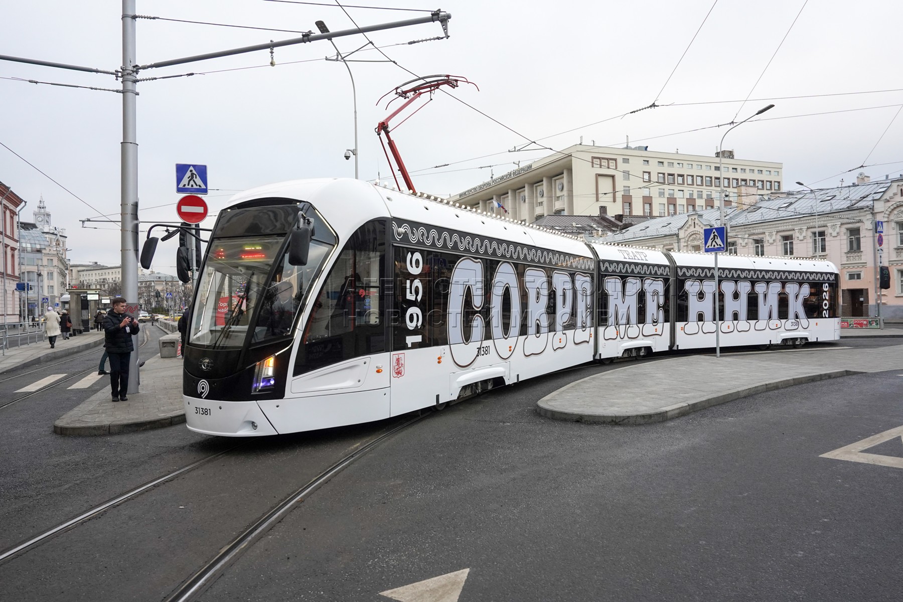 • Описание: Запуск трамвая «Современник» по маршруту А на Чистопрудном бульваре.