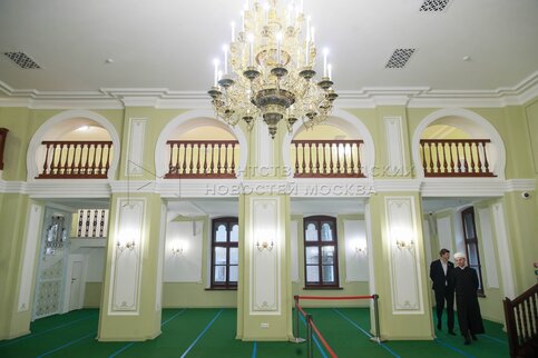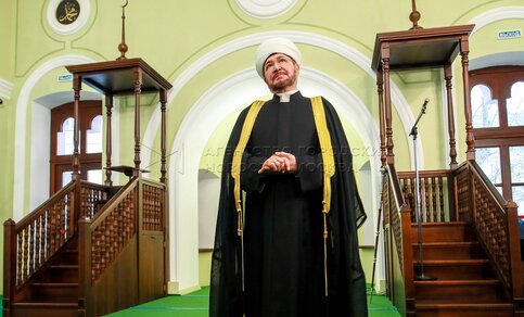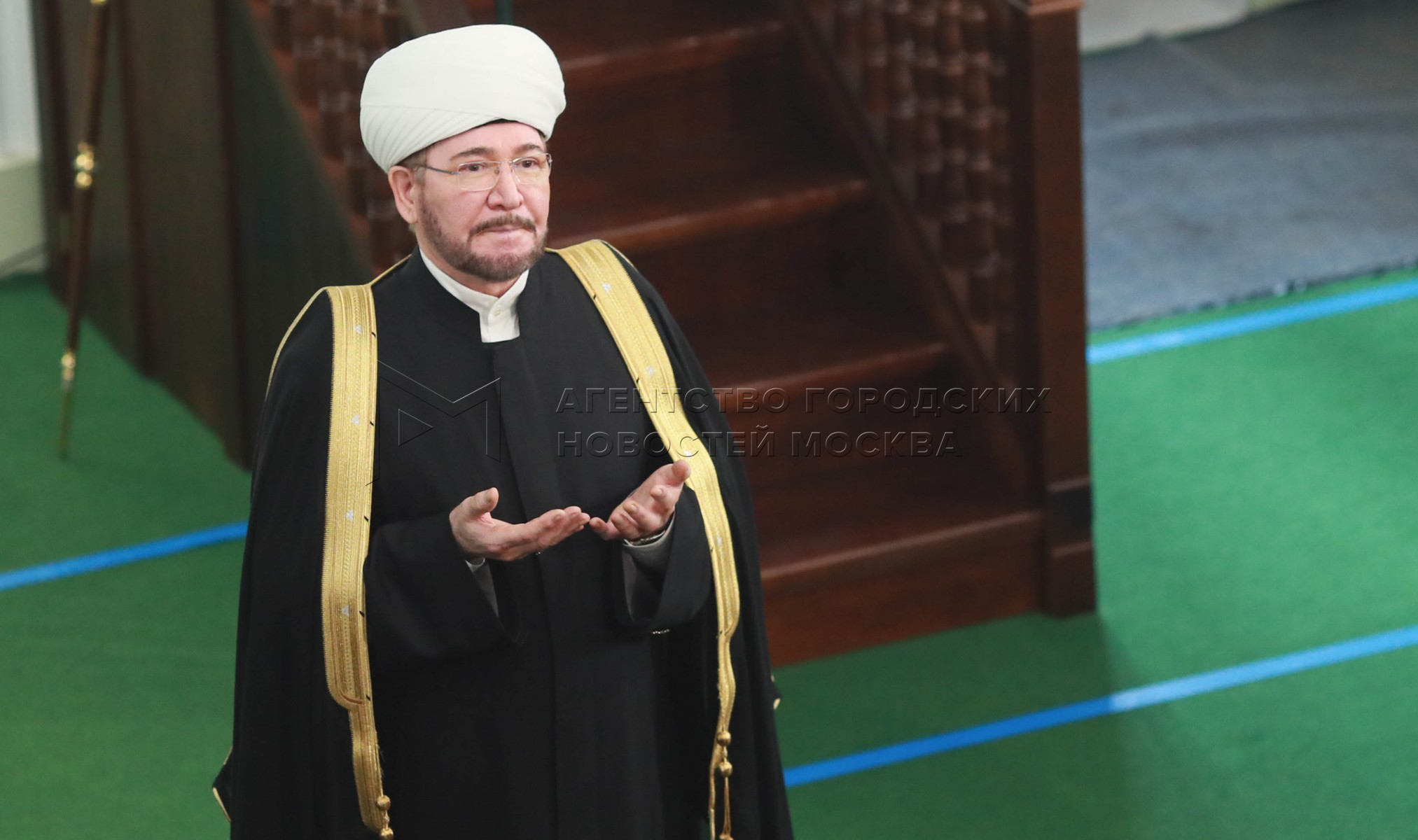 - Описание: Председатель Совета муфтиев России, председатель Духовного управления мусульман Европейской части России муфтий шейх Равиль Гайнутдин перед пятничной проповедью в основном молельном зале Исторической мечети на ул. Большая Татарская, открывшейся после реконструкции, в день джума (коллективная молитва).