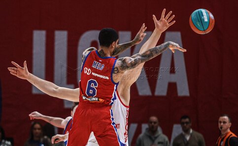 Игрок ЦСКА Мело Тримбл (справа) во время баскетбольного матча между ЦСКА (Москва)...