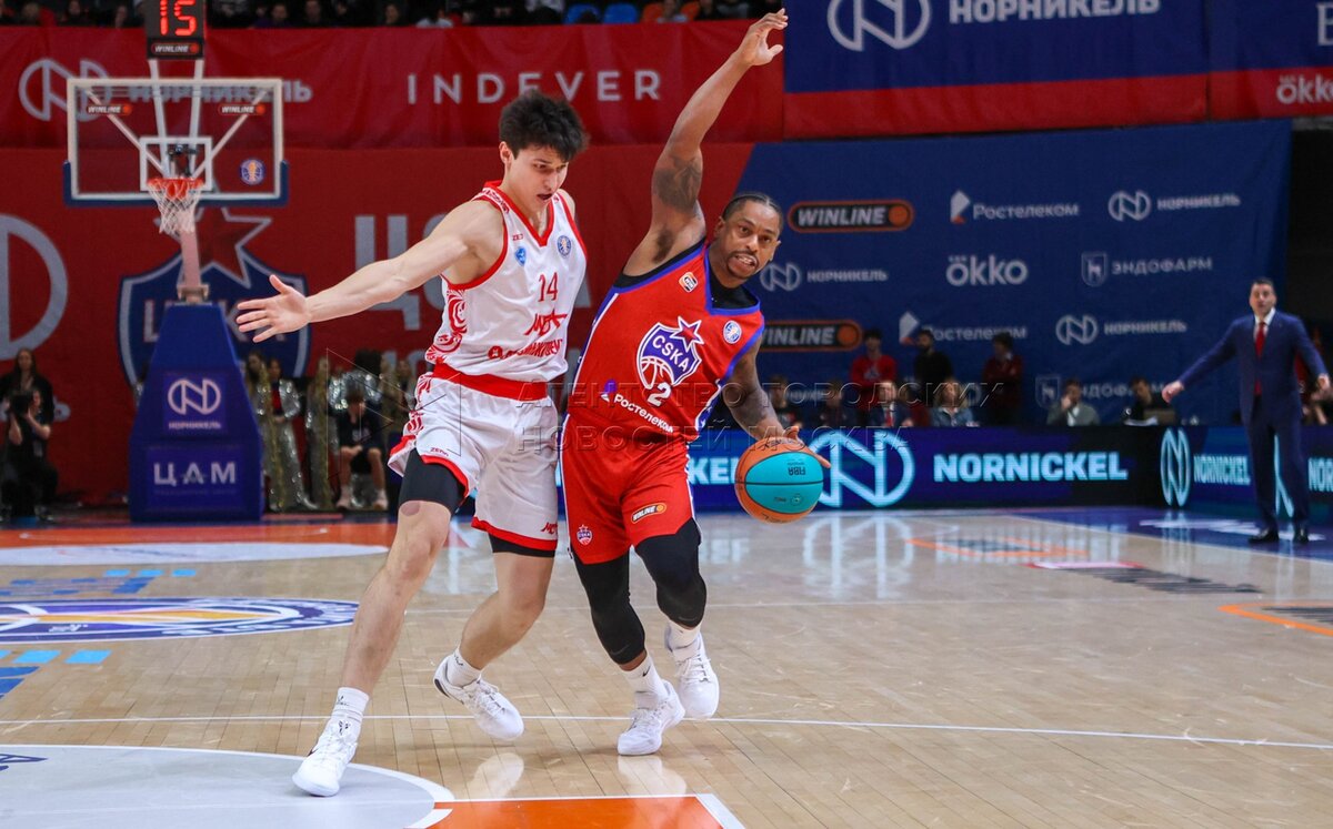 Игрок ЦСКА Самсон Руженцев (справа) во время баскетбольного матча между ЦСКА (Мос...