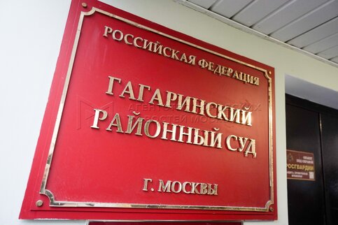 Табличка на здании Гагаринского районного суда Москвы.
