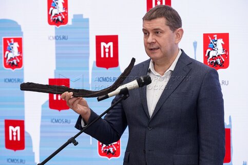• Описание: Руководитель департамента культурного наследия Москвы Алексей Емельянов во время пресс-конференции «Итоги археологического сезона 2025».
