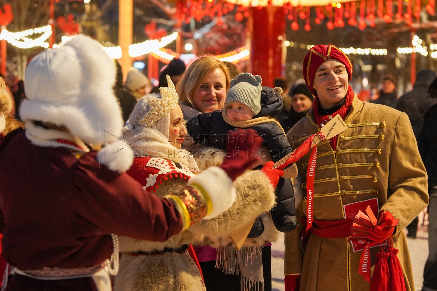 Игра в снежки на фестивале «Фолково» в парке «Сокольники», на празднике, где русс...