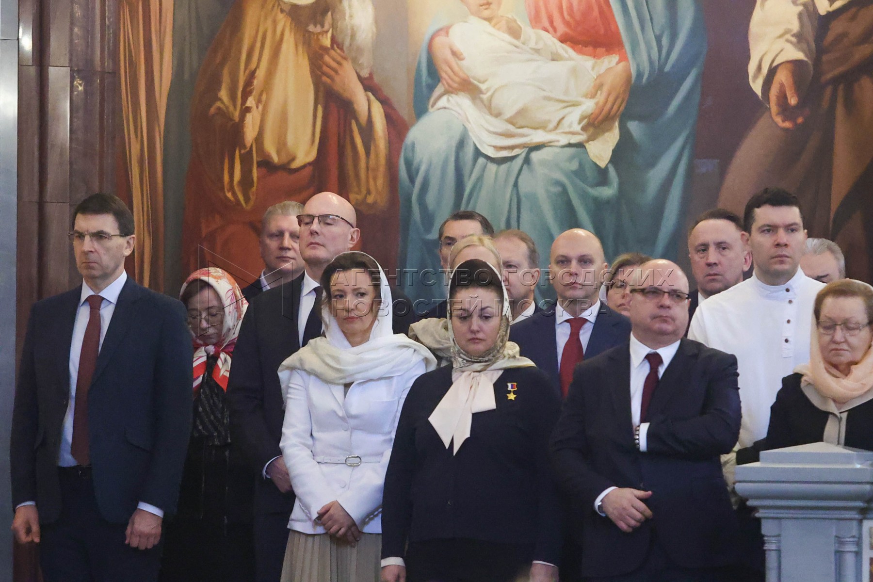 - Описание: Полномочный представитель президента РФ в Центральном федеральном округе Игорь Щeголев, заместитель председателя правительства РФ Дмитрий Чернышенко, заместитель председателя Государственной Думы РФ Анна Кузнецова и бывший депутат Государственной Думы РФ, летчик-космонавт, Герой России Елена Серова (слева направо) во время божественной литургии в семнадцатую годовщину интронизации Святейшего Патриарха Московского и всея Руси Кирилла в кафедральном соборном храме Христа Спасителя.