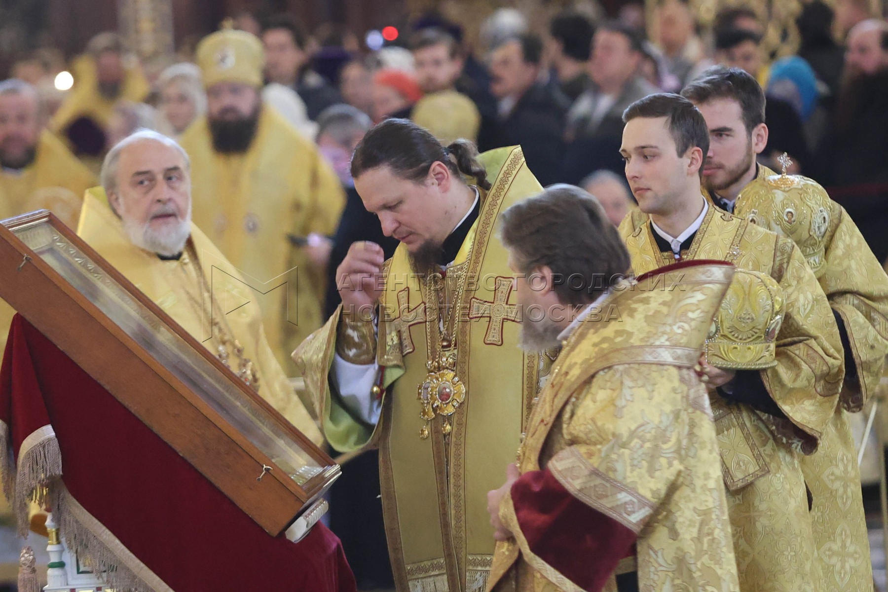 Святейший Патриарх Московский и всея Руси Кирилл во время божественной литургии в...