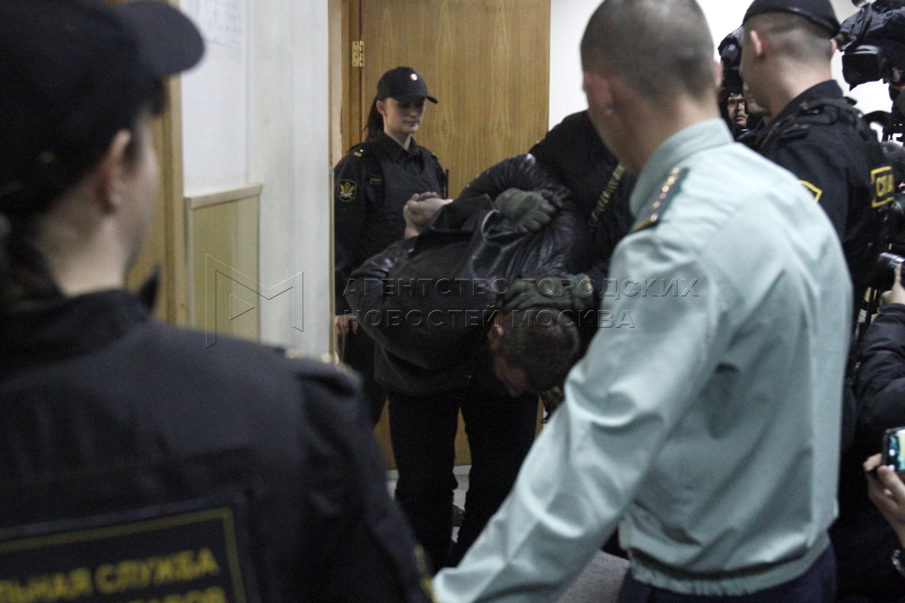 • Описание: Подозреваемых в убийстве Б.Немцова выводят из зала Басманного суда