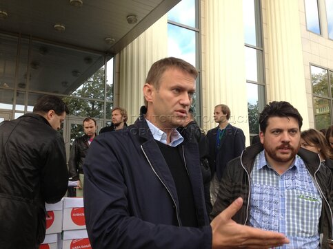 • Описание: Алексей Навальный (слева) и глава предвыборного штаба Леонид Волков доставил жалобы в Мосгорсуд.