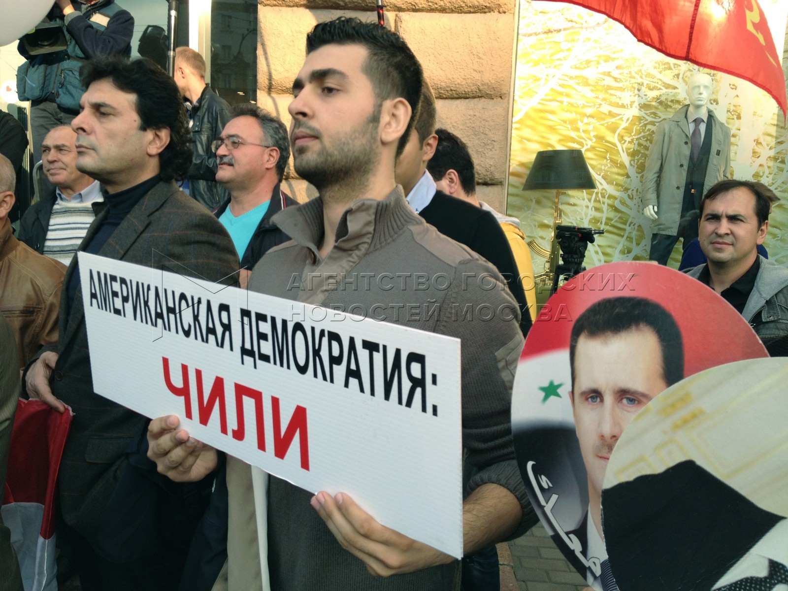 Митинг КПРФ «Против американо-натовской агрессии в отношении суверенного государства Сирии» на Новинском бульваре напротив здания посольства США.