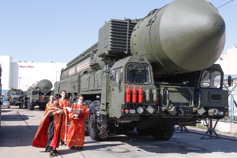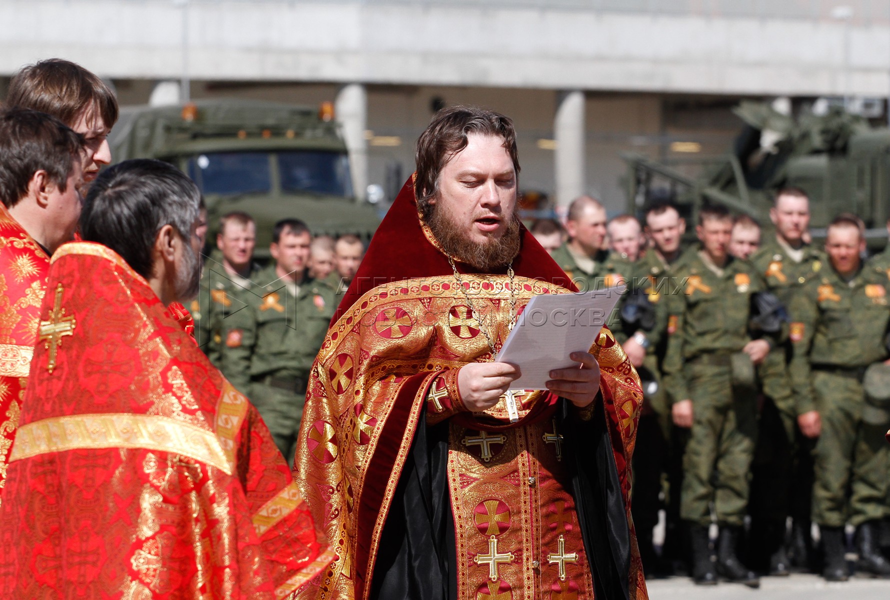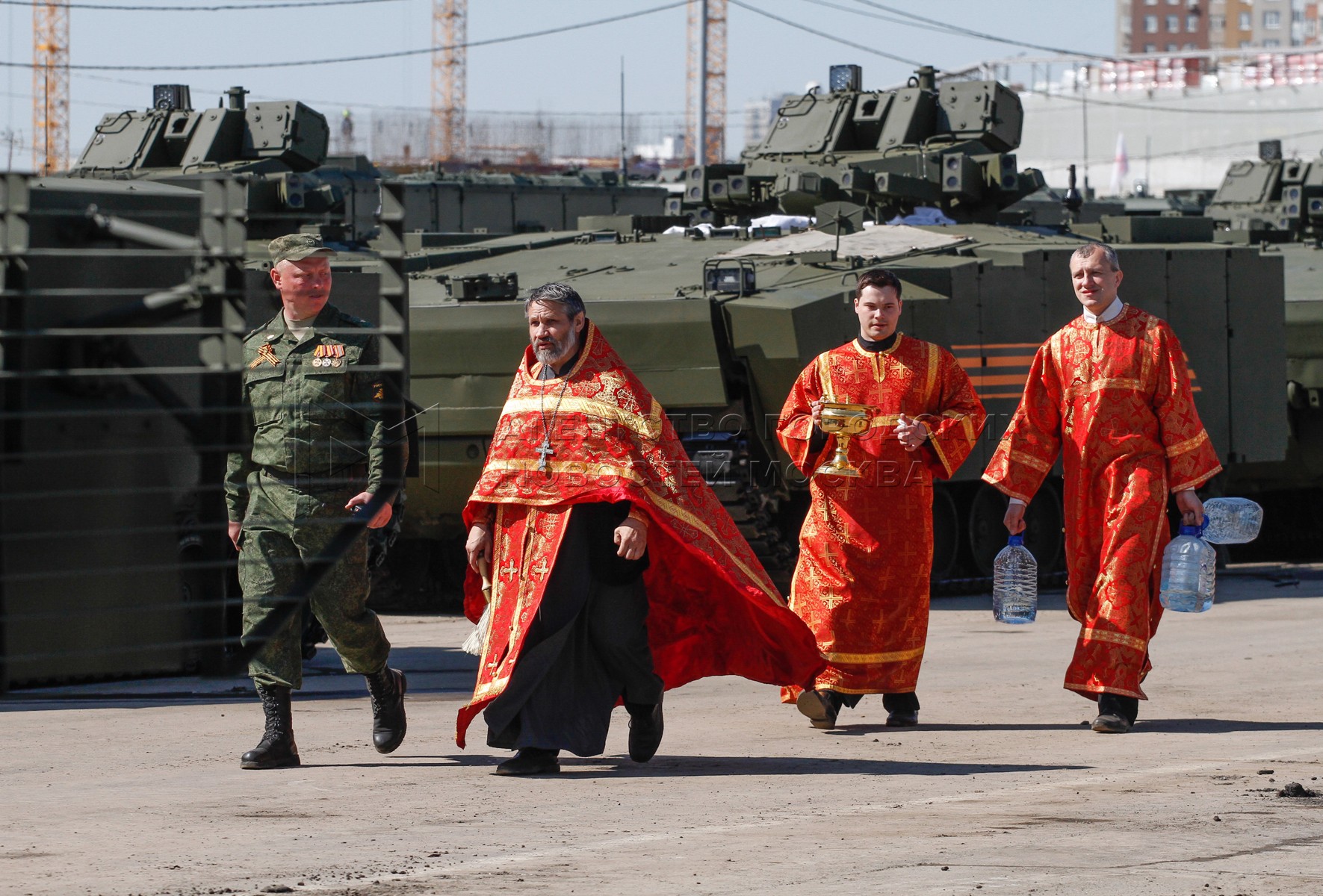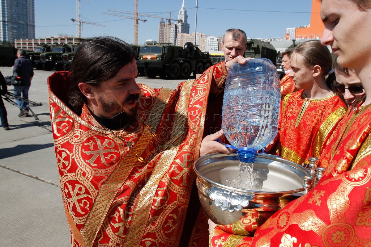 • Описание: Обряд благословения участников Парада Победы и освящения пусковых установок на Ходынском поле