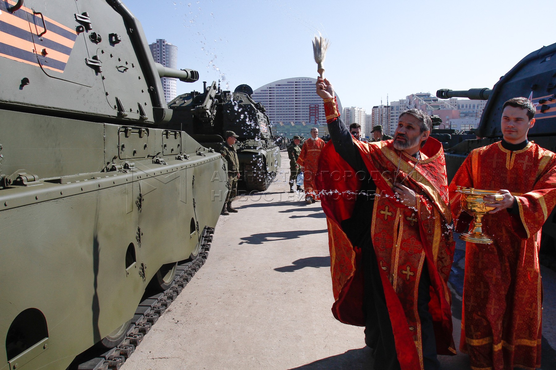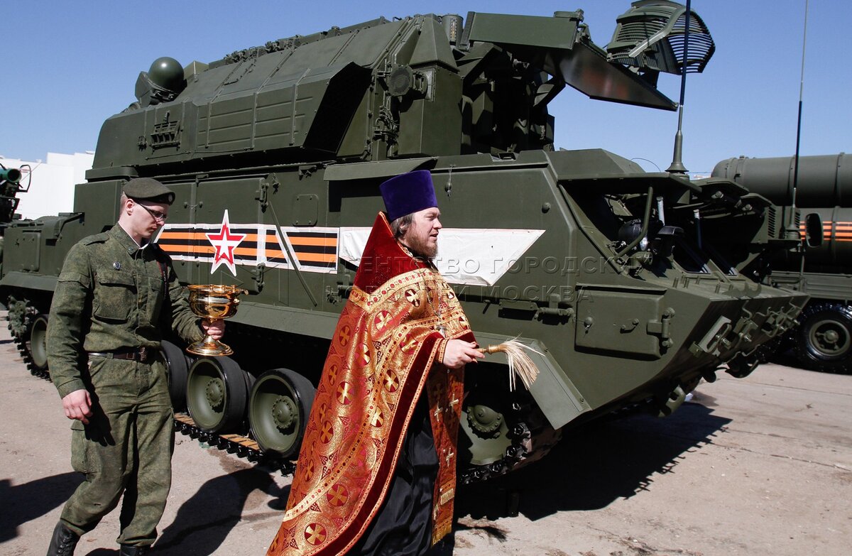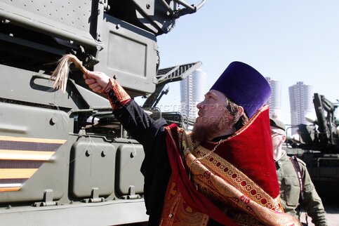 Обряд благословения участников Парада Победы и освящения пусковых установок на Хо...